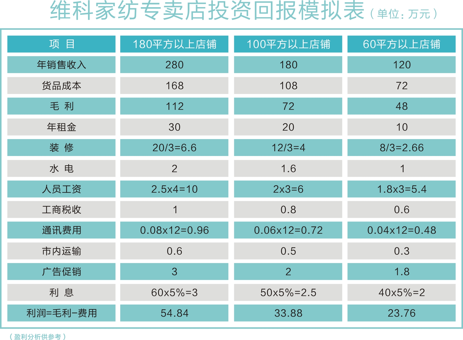 一個專賣店的成功離不開公司的支持,“維科家紡”作為行業領導品牌,擁有一支經驗豐富的營銷團隊及品牌推廣團隊, 可為加盟商提供全方位支持,能快速幫助加盟商實現創業夢想。