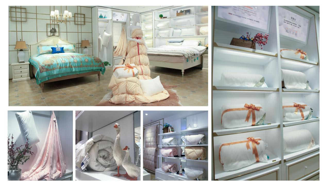 芯類產(chǎn)品一直以來都是家紡行業(yè)銷售的大頭,為進(jìn)一步提高和義店芯類產(chǎn)品銷售業(yè)績(jī),公司特意對(duì)一樓原有空間進(jìn)行重新規(guī)劃,開辟了一塊80余平的獨(dú)立芯類區(qū),芯設(shè)計(jì)上采用白色貨柜、鍍鈦金屬件、金屬玻璃柜的組合,讓整個(gè)芯類區(qū)更加通透明亮。維科家紡主打的維科朵絨被、蠶絲被、石墨烯纖維被等都將在該區(qū)域以展床、垂掛、卷筒等不同形式進(jìn)行集中展示。此外,售價(jià)近三十萬的鎮(zhèn)店之寶——至尊冰島雁鴨絨被,也首次亮相和義店。