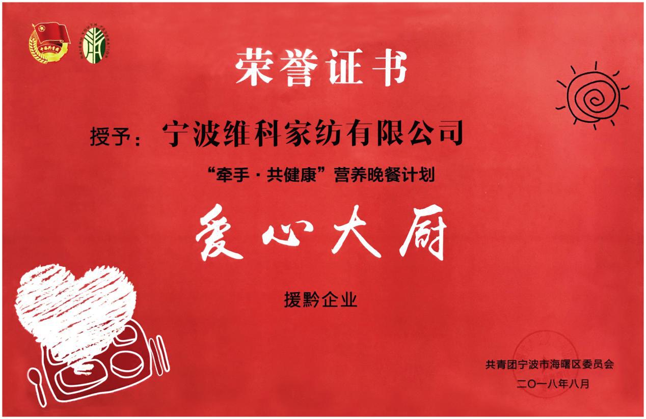 海曙區(qū)委副書記、政法委書記張啟表在蒞臨維科家紡攤位詢問義賣情況時,對于維科家紡的企業(yè)責任感、愛心奉獻精神,表示了高度贊揚。海曙區(qū)團委更是授予維科家紡“愛心大廚援黔企業(yè)”榮譽稱號。