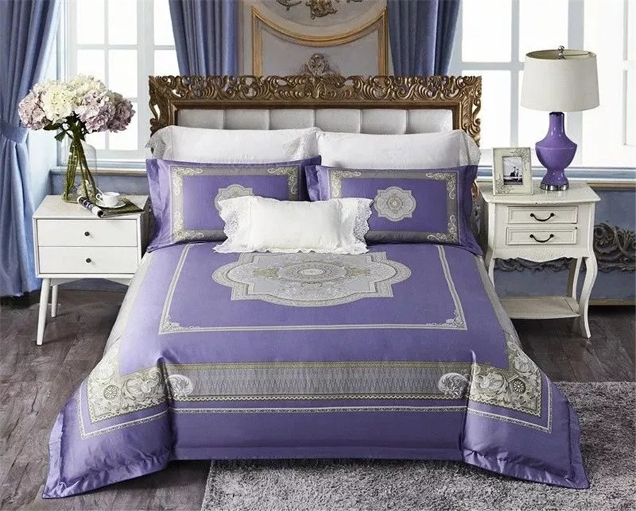 一套床品是結婚當天使用,最好是采用大紅色進行裝點,紅色看上去會非常喜慶,而且可以納福辟邪,花型則多是選擇牡丹花、鳳尾花、百合花等花型紋樣,符合當?shù)厝巳崦姥胖碌钠肺丁A硗鈨商状财肥窃诮Y婚后的兩三天使用,這些床品可以采用較溫馨的系列來裝扮(如粉色、紫色、金色),最后三到七套床品是常用款,就是日常換洗使用的購買簡單大方樣式的床品即可。