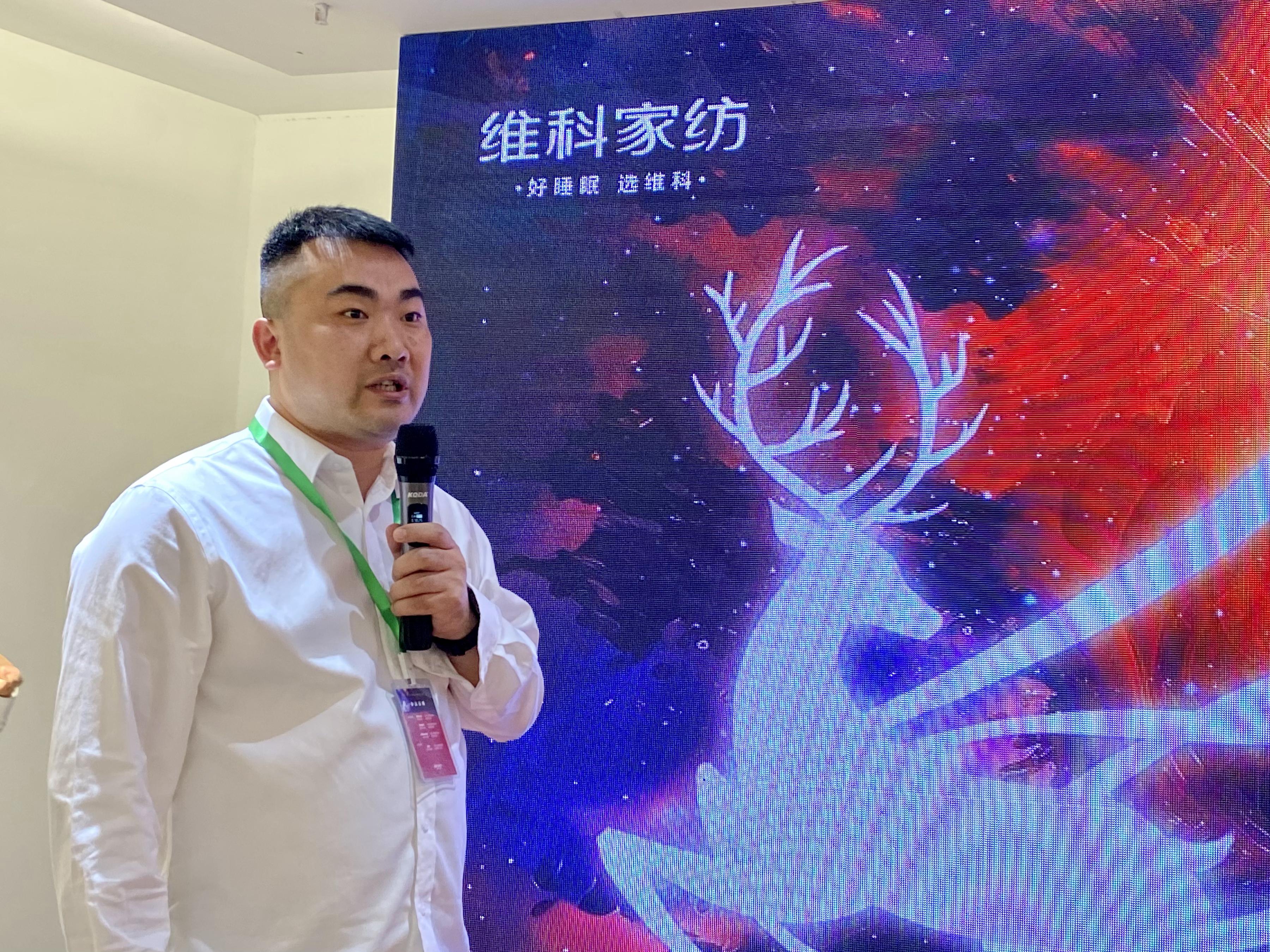 維科家紡總經理陳豪杰先生結合「織夢行」主題對維科家紡百年歷史進行回顧,并送出家紡行業的祝福,為本次定貨會致辭。